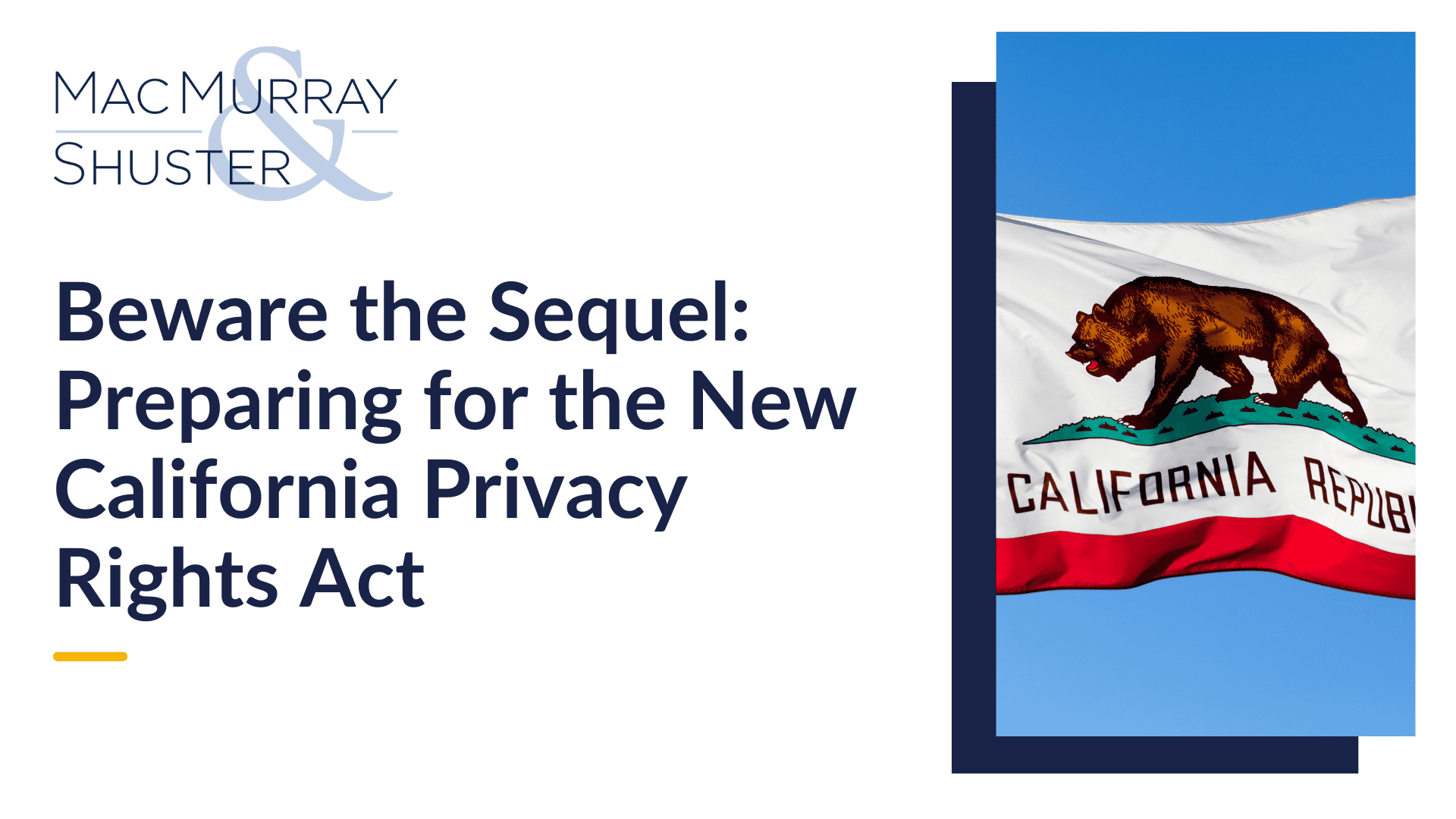 Get ahead of the curve with Mac Murray & Shuster attorneys Nick Whisler and Josh Stevens. Join us for an informative discussion of the CPRA’s most impactful provisions, timelines for implementation, and how you can reduce enforcement risk.